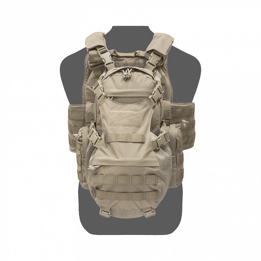 The HCP can be worn with 2 padded removable shoulder straps or when these are removed the HCP can be MOLLEd on to the back of any armour plate carrier.